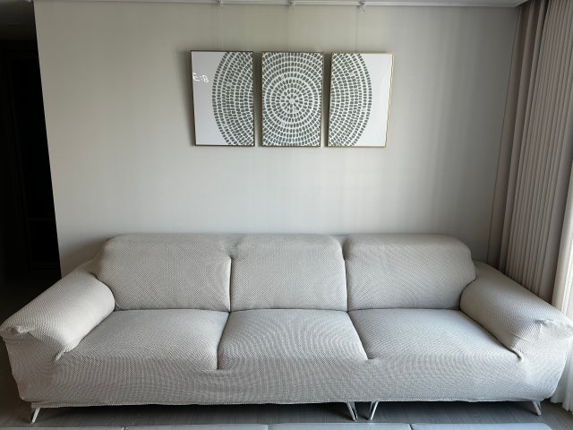 원하던 밝은 아이보리 색이고 각잡으니 이쁘게 나오네요. 5인용 헤드레스트 소파에 6인용 커버하니 딱 맞네...